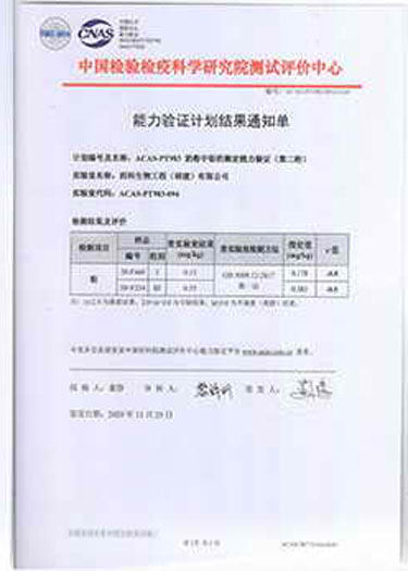 公司检测能力通过了中国检验检疫科学研究院测试评价中心的验证