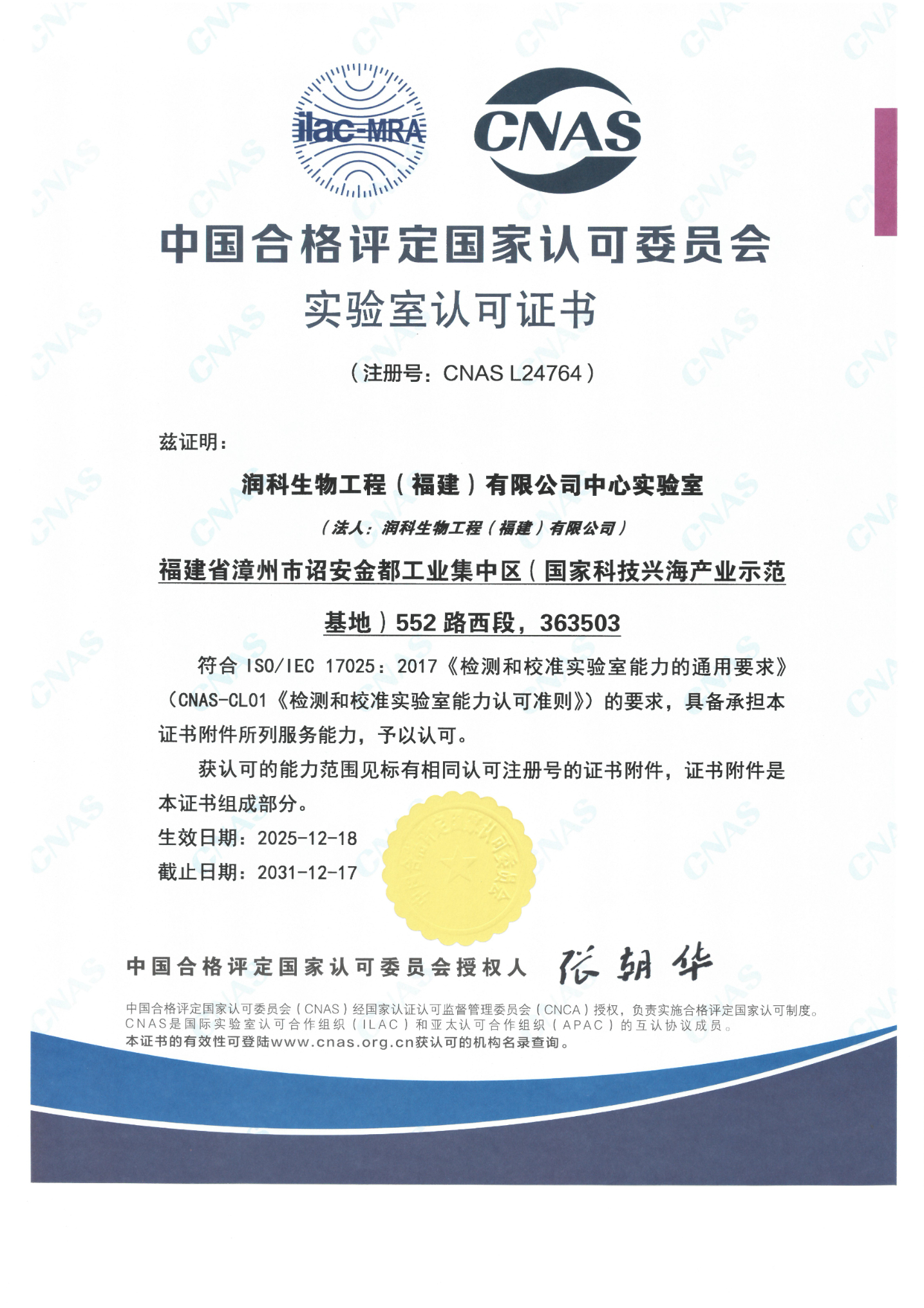 CNAS实验室认可证书