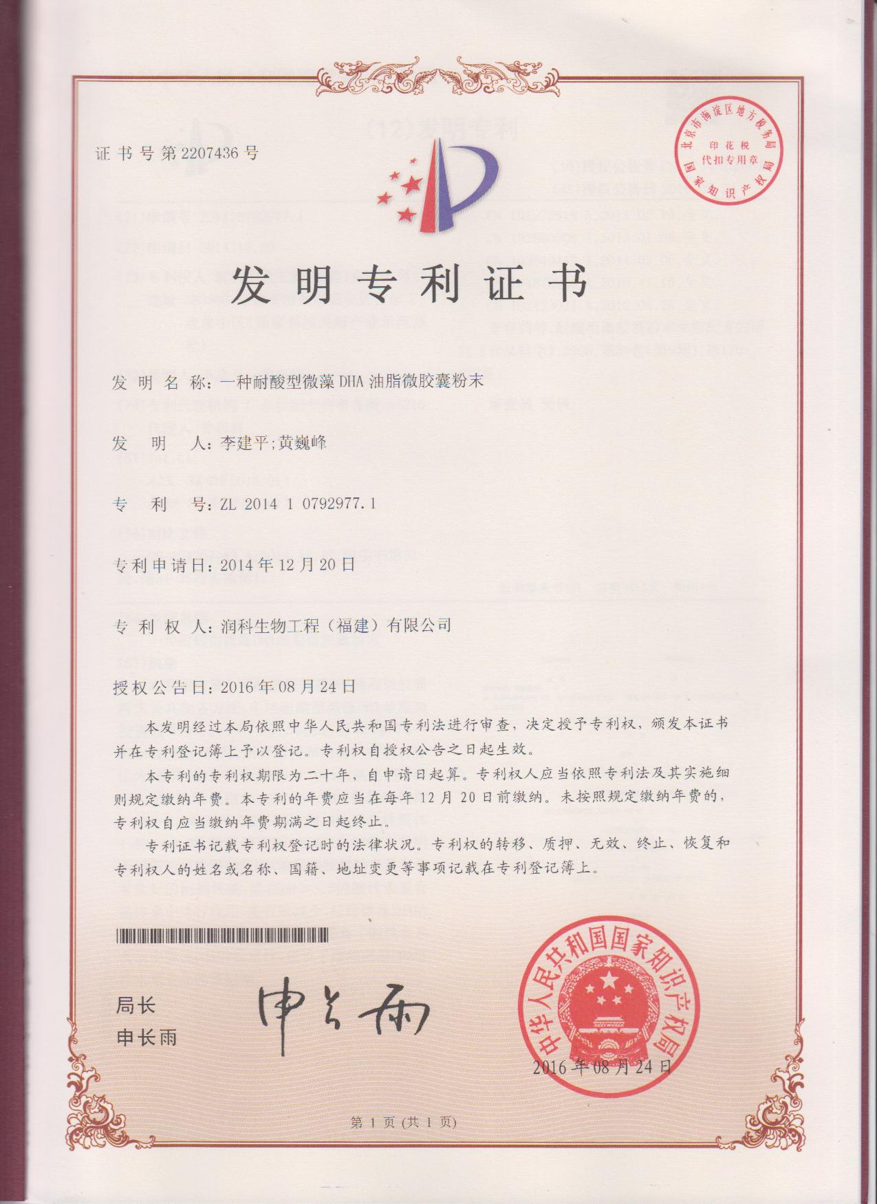 2001年突破国内微藻DHA关键技术,掌握中国藻油DHA、ARA核心技术,拥有裂壶藻、寇氏藻、裂壶藻和寇氏藻混合发酵等多项专利技术。