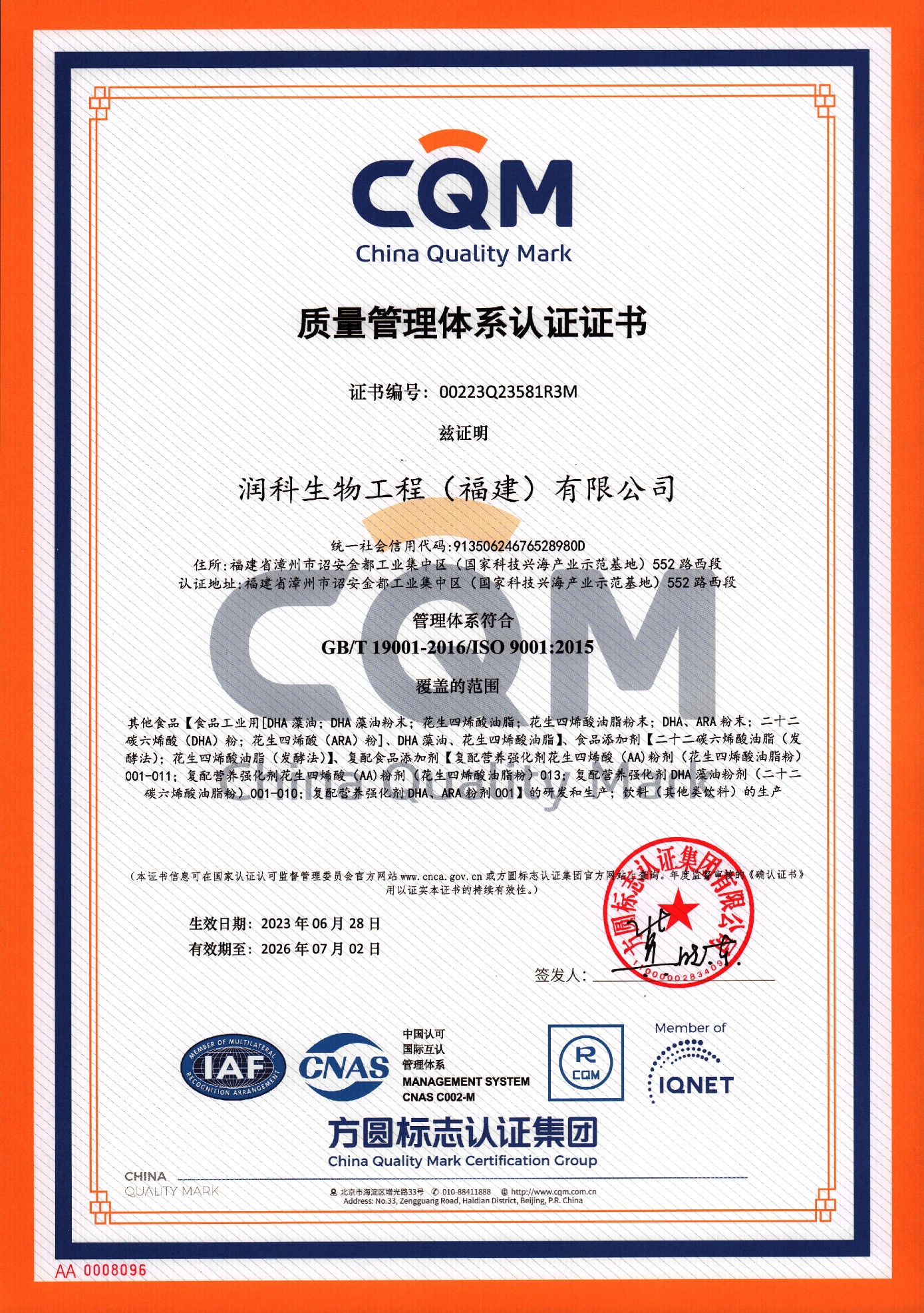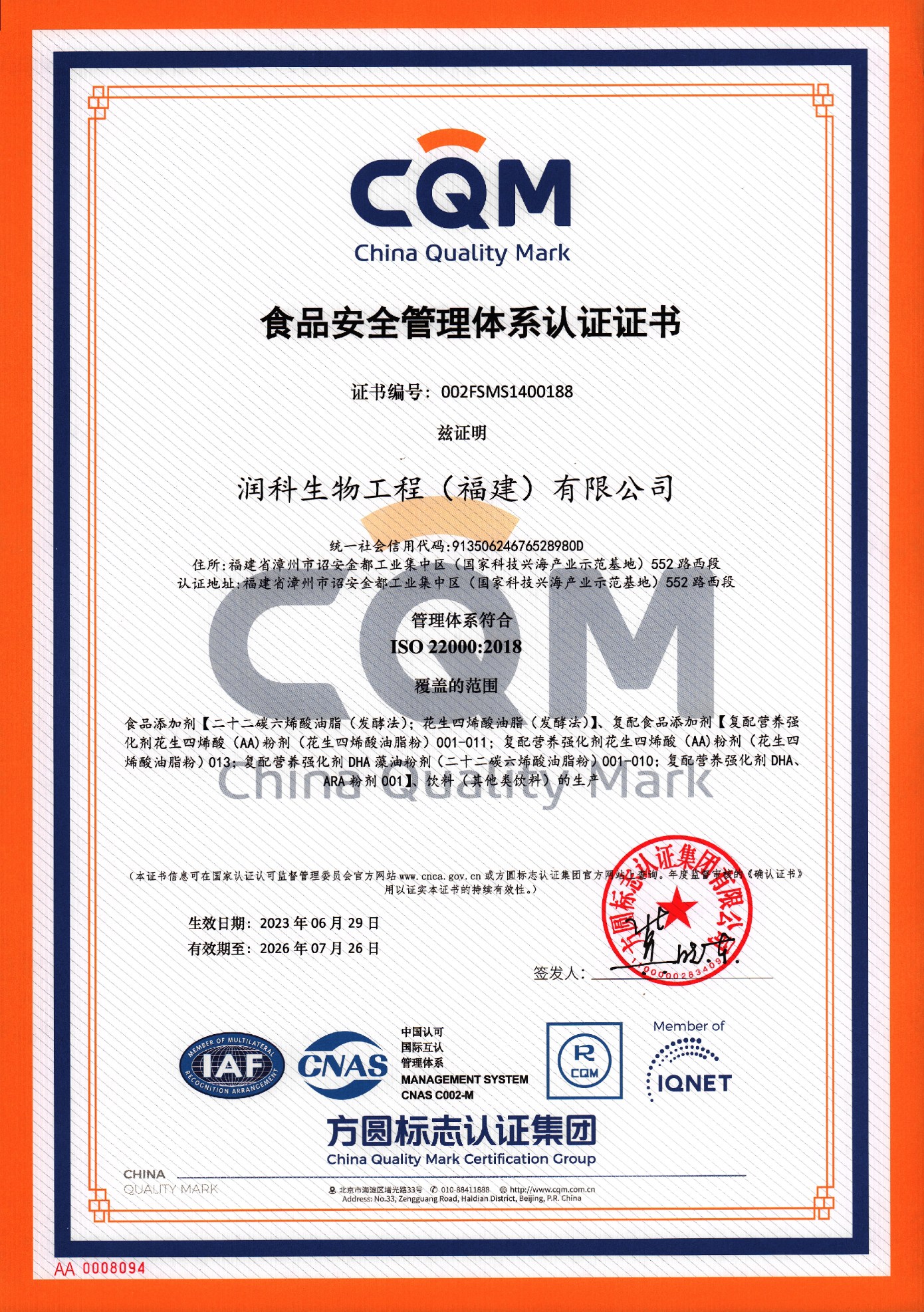 建立全程质控体系,持有ISO22000、FSSC22000、IP非转基因认证等15项国际权威认证。